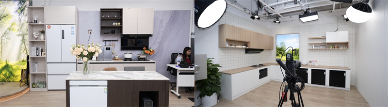 大家電產品有兩個特點,第一就是型號特別多,第二就是體積大,不方便挪動,不像小商品那樣在一個場景里就可以把所有的產品都展示到。在直播間里,基本上一個房間的話至少都包含3個景以上,最多的一個房間有 13 個場景。