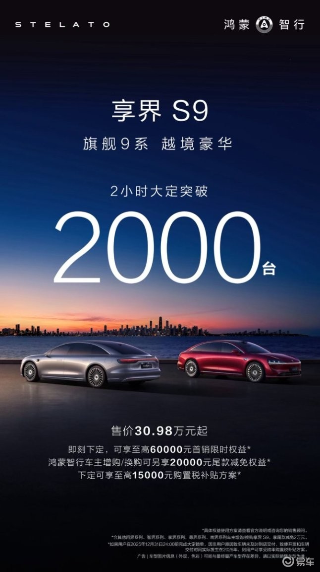 價格方面,新款享界S9以30.98萬元的起售價震撼市場,并推出至高6萬元的購車權益,性價比優(yōu)勢顯著。上市僅2小時,大定訂單便突破2000臺,迅速成為市場焦點。與此同時,享界品牌的產(chǎn)品矩陣也在不斷完善,S9T上市66天大定超3萬臺,與S9形成“轎旅雙子星”組合,進一步鞏固了品牌的市場地位。這一成績不僅體現(xiàn)了用戶對享界品牌“新豪華”理念的高度認可,也標志著中國高端智能電動品牌在豪華市場的競爭力正在快速提升。對于追求儀式感、情緒價值與實用性的新時代精英而言,新款享界S9無疑是一個值得期待的豪華之選。