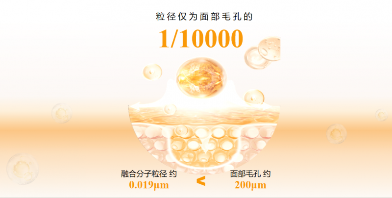 ②油溶膠原分子具備優異的高彈特性,并且其分子粒徑僅為皮膚毛孔的1/10000,易于通過細胞間隙與脂質基質,實現高效速透吸收;