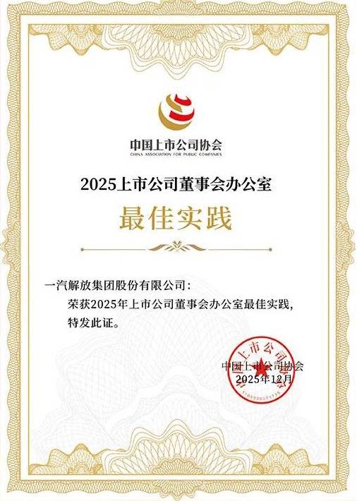 近日,由中國上市公司協(xié)會主辦的“上市公司董辦最佳實踐案例征集活動”評選結(jié)果正式公布。一汽解放董事會辦公室憑借其在規(guī)范治理、高效履職及創(chuàng)新實踐中的優(yōu)異表現(xiàn),成功入選2025年度上市公司董事會辦公室最佳實踐案例,成為資本市場治理能力提升的典范。