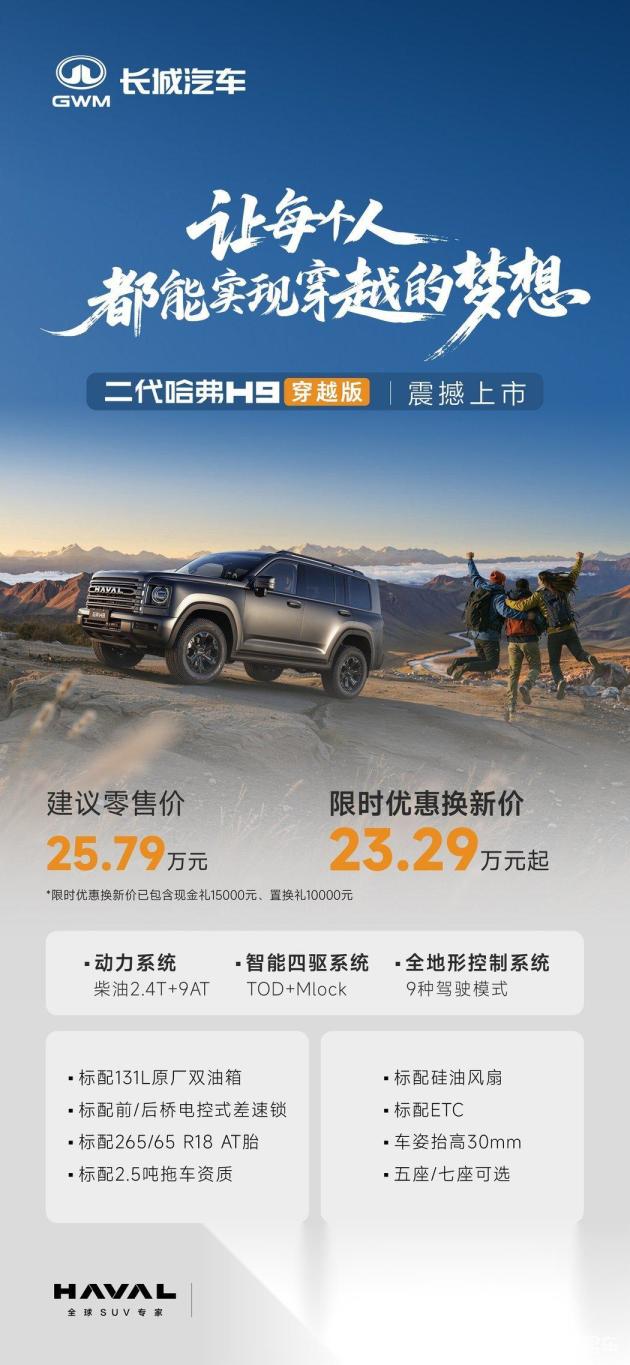從廣州車展亮相到雅江1400公里試煉,二代哈弗H9穿越版以“看得見的實力”與“夠得著的價格”,重新定義國產長穿越野車的價值標桿。23.29萬起的首發價,對比同級別合資車型,性價比優勢明顯,讓“高端長穿配置”不再局限于少數人。它讓每個人都能更經濟、可靠、舒適地享受越野自由,推動越野平權,讓長穿夢想不再受身份與預算限制,遠方美景皆可成為日常風景。