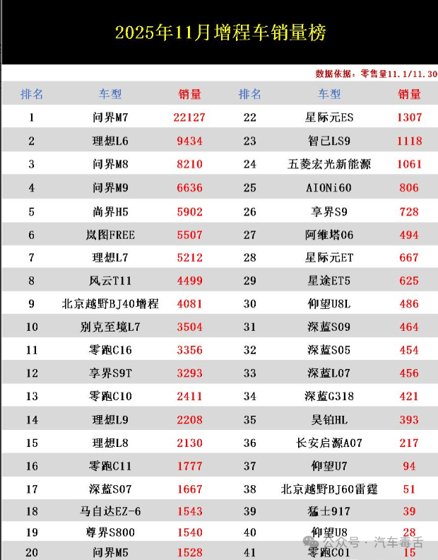 11月增程車市場(chǎng)爆發(fā):42款車型入榜,新老勢(shì)力激戰(zhàn)正酣