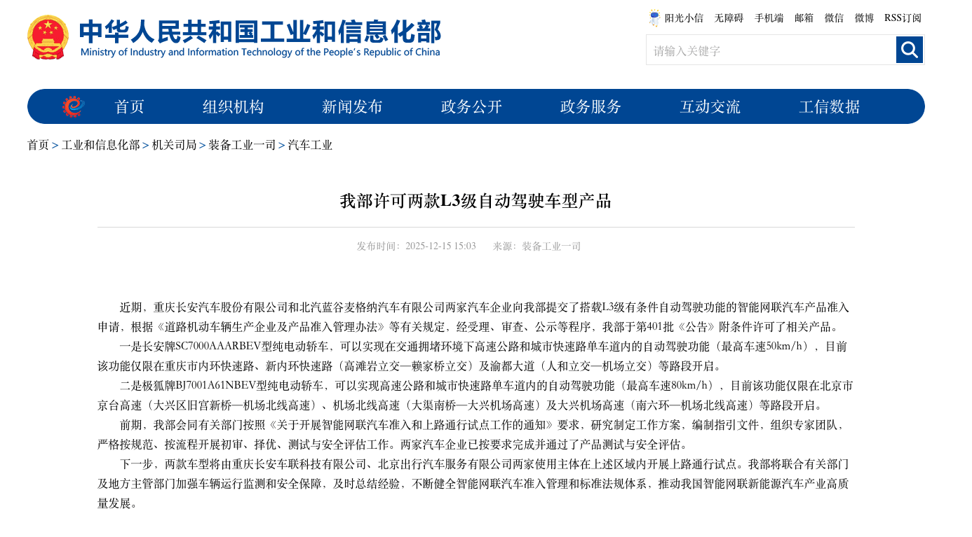 工業和信息化部近日正式公布我國首批L3級有條件自動駕駛車型準入許可,標志著自動駕駛技術進入實質性落地階段。此次獲批的兩款智能網聯汽車均具備特定場景下的自動駕駛能力,將分別在重慶和北京開展上路試點。