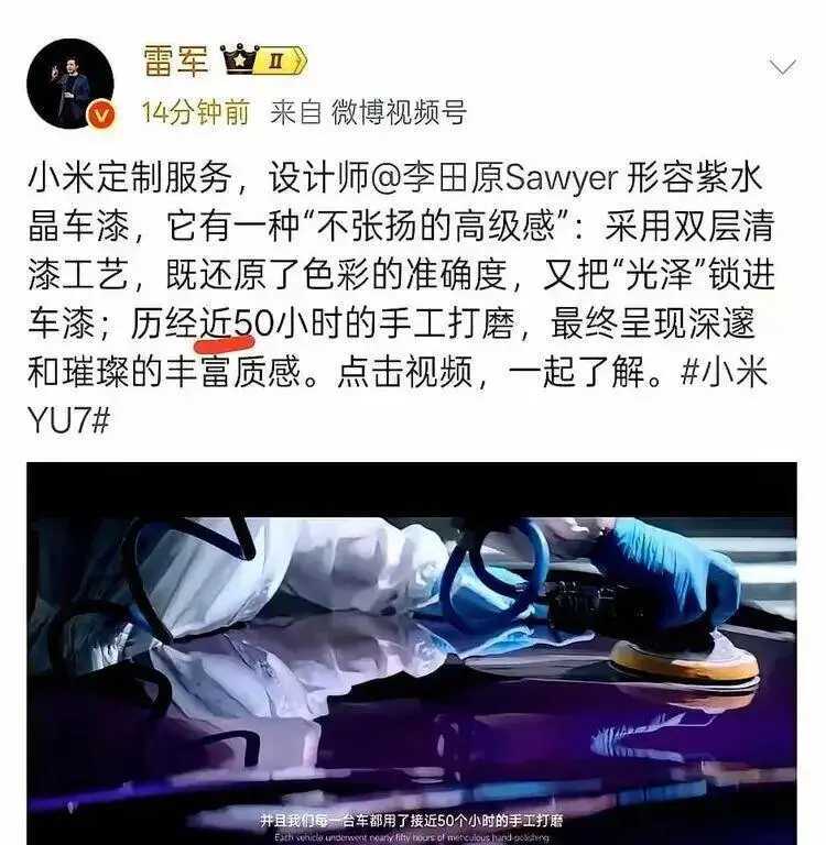 小米汽車發布會現場,雷軍以極具感染力的語言介紹SU7 Ultra紫水晶車漆工藝時,臺下掌聲雷動。然而,當“人工打磨近50小時”的宣傳語傳至社交平臺,輿論風向驟變。網友不再聚焦于工藝細節,而是將質疑聲推向高潮:“近50小時?到底是49還是30?”“雷氏話術又來了。”這場爭議背后,折射出公眾對小米汽車營銷策略與產品實際表現的深度不信任。