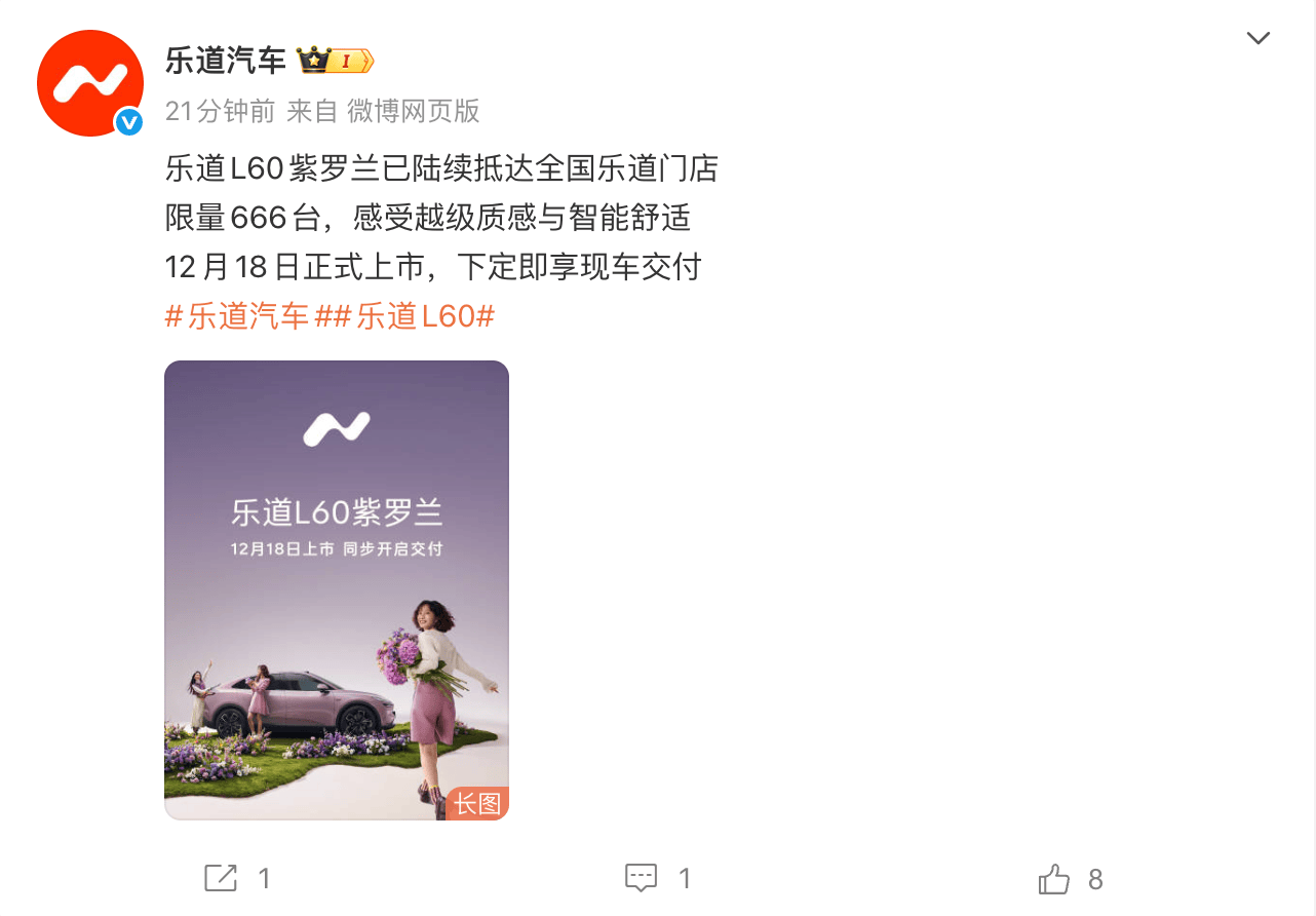 樂道汽車近日宣布,旗下樂道L60紫羅蘭限定版將于次日正式開啟交付。目前,該車型已陸續抵達各地門店,為消費者提供近距離體驗的機會。與現款在售車型相比,紫羅蘭限定版最引人注目的亮點是采用了專屬的紫羅蘭車漆,這一獨特設計使其在外觀上更具辨識度。
