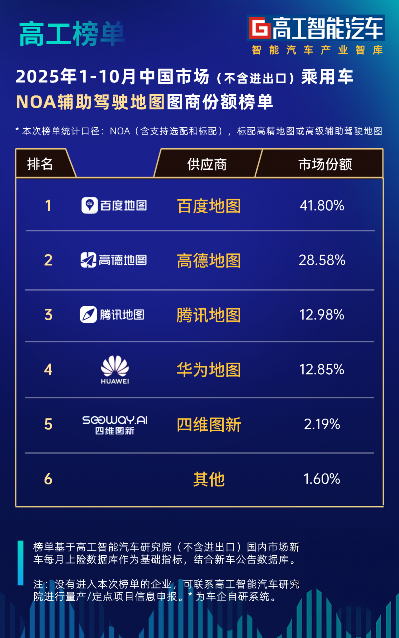 2025年1–10月新售的搭載L2+智能輔助駕駛系統的車型中,已有超過四成選擇百度地圖,充分體現了其已經成為智能汽車的標配。百度地圖在L2+市場的領跑,本質上是導航價值從“路徑指引”向“智駕安全基礎設施”的升級,其領先地位已形成護城河,隨著L3級自動駕駛量產在即,百度地圖在車道級導航、動態數據處理等領域的技術積累,將進一步轉化為更大的市場優勢。可以預見,在未來的智能出行時代,百度地圖的“標配”屬性將更加凸顯,持續定義智駕導航的行業標準。