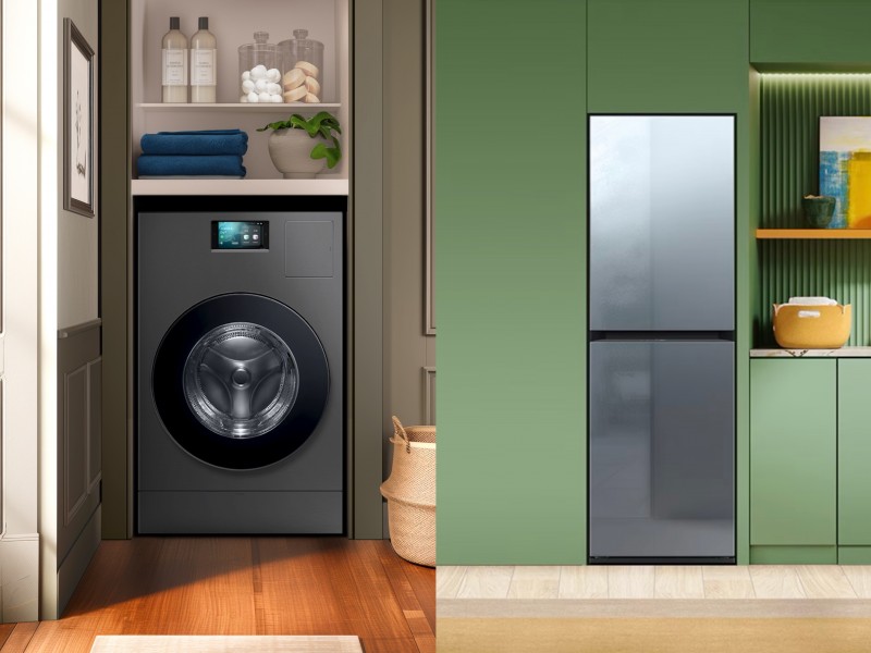 左為三星AI神 黑鉆熱泵洗烘旗艦,右為三星AI神 黑鉆衣物護理機
