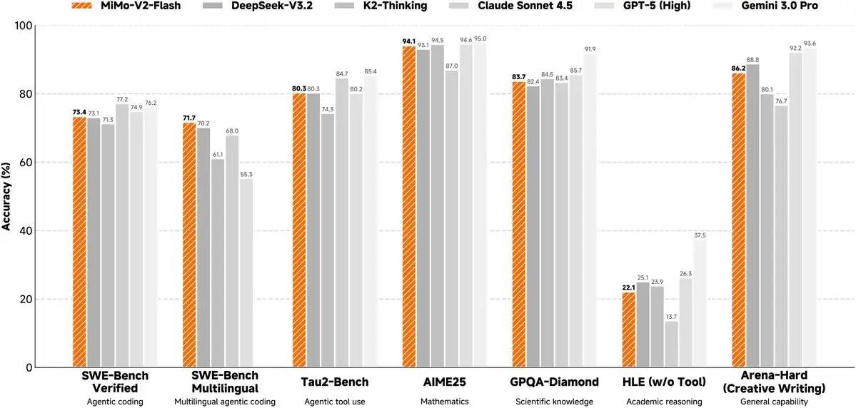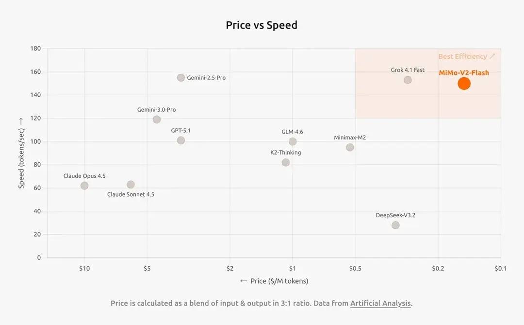 小米團(tuán)隊(duì)明確將該模型定位為Agent基座,核心優(yōu)化方向聚焦三大領(lǐng)域:強(qiáng)化代碼與工具調(diào)用能力以提升智能體交互效率;通過混合注意力機(jī)制突破推理速度瓶頸;探索后訓(xùn)練范式以激發(fā)強(qiáng)化學(xué)習(xí)潛能。官方數(shù)據(jù)顯示,MiMo-V2-Flash在SWE-Bench Multilingual測(cè)試中超越GPT-5等閉源模型,代碼能力躋身全球開源模型前列。更引人注目的是其成本優(yōu)勢(shì)——推理價(jià)格僅為Claude Sonnet 4.5的2.5%,生成速度卻達(dá)2倍,API定價(jià)輸入0.7元/百萬tokens、輸出2.1元/百萬tokens,形成顯著市場(chǎng)競(jìng)爭力。