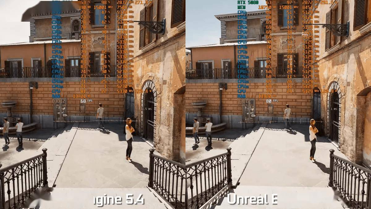 YouTube頻道MxBenchmarkPC近日發布的一期技術評測視頻引發關注,其針對虛幻引擎5.7版本的性能表現展開深度測試。實驗數據顯示,在搭載英偉達GeForce RTX 5080顯卡與英特爾酷睿i7-14700F處理器的平臺上,新版本較5.4版本實現GPU性能最高25%、CPU性能最高35%的顯著提升,同時內存占用率明顯下降。