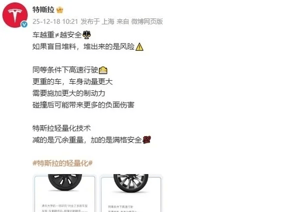 近日,特斯拉通過發(fā)布科普文章向公眾傳遞了一個顛覆傳統(tǒng)認知的觀點:車輛重量與安全性并非成正比關系。文章明確指出,盲目增加車身重量不僅無法顯著提升安全性能,反而可能帶來更多潛在風險。