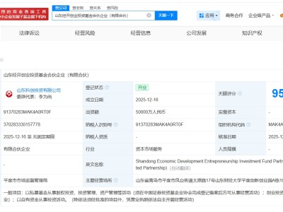 山東經開創業投資基金登記成立 出資額5億