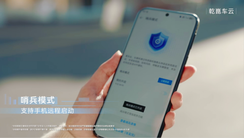 視頻中,一位母親在送孩子上學前,通過華為乾崑APP打開「云瞰」功能,遠程查看車輛狀態,提前發現車輛被堵并及時協調挪車,從容應對早高峰出行。隨后,她將車停在咖啡館旁,開啟「哨兵模式」,當身穿玩偶服的路人不慎觸碰到車身時,系統立即啟動錄像并推送告警至手機,母親通過「云瞰」功能遠程查看現場畫面,確認車輛無恙后,繼續安心與客戶交談。