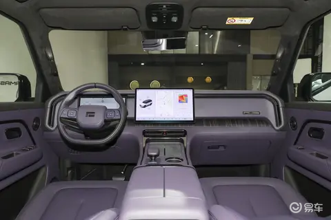 外觀方面,極石ADAMAS采用硬朗的方盒子造型,延續家族式設計語言。前臉以“光影之翼”為主題,中網邊框與車身同色,Y字形矩陣式LED大燈組與中央發光LOGO構成三角形布局,搭配底部蜂窩狀進氣口和高強度鋁合金前保險杠,整體辨識度極高。蚌式發動機蓋進一步強化了力量感。車身側面采用雙色涂裝與懸浮式車頂設計,部分車型配備車頂激光雷達,隱藏式門把手、外掛式半包備胎、黑色外擴輪眉及20英寸全地形輪胎,凸顯越野氣質。車尾部分,外掛式備胎與長條狀高位剎車燈、貫穿式尾燈形成呼應,后保險杠集成銀色護板與拖車鉤接口,電動尾門支持感應開啟,并配備磁吸照明燈和掛鉤,細節設計兼顧實用性與美觀性。