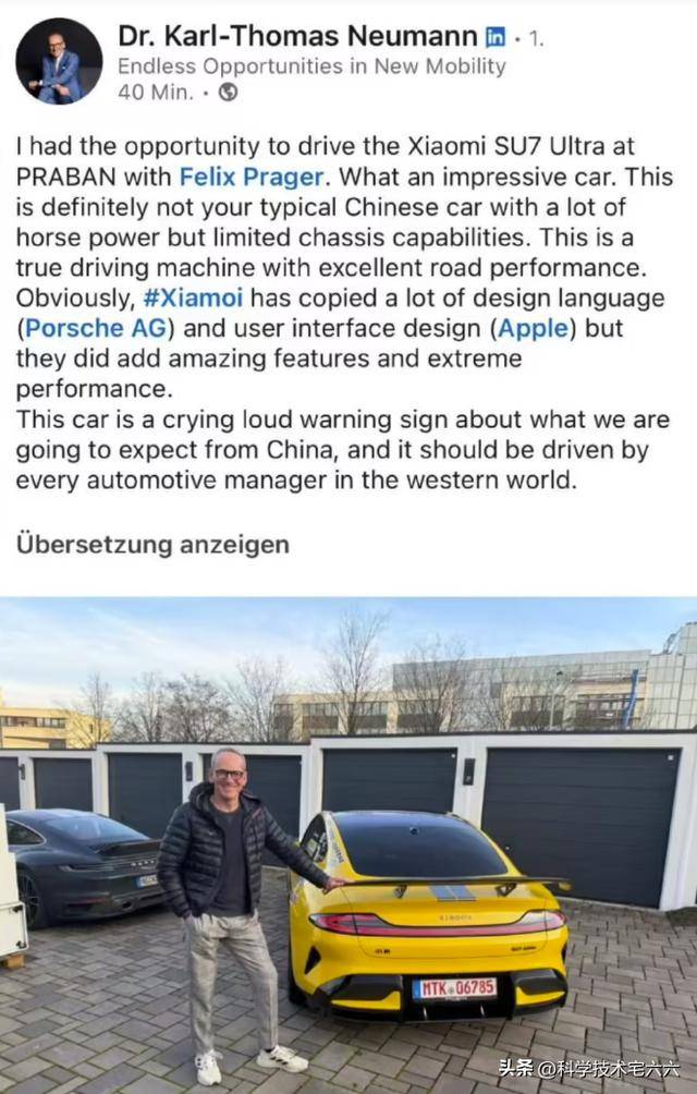 近日,大眾中國前首席執(zhí)行官Dr. Karl-Thomas Neumann在社交平臺分享了他試駕小米SU7 Ultra的體驗,直言這款車顛覆了他對中國高性能電動車的認(rèn)知。他特別強(qiáng)調(diào),SU7 Ultra并非傳統(tǒng)意義上"配置堆砌但底盤平庸"的車型,而是將道路性能與駕駛樂趣完美融合的"真正駕駛機(jī)器"。這一評價迅速引發(fā)汽車行業(yè)熱議,不少業(yè)內(nèi)人士認(rèn)為,這標(biāo)志著中國品牌在高端性能車領(lǐng)域?qū)崿F(xiàn)了質(zhì)的突破。