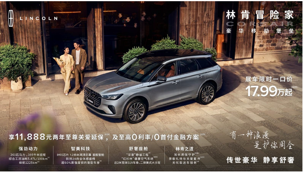 林肯冒險家宛如一臺為追求生活品質的小家庭精心打造的“精致生活座駕”。無論是處于兩人世界,需要一輛能承載浪漫旅途、提供靜謐空間的移動港灣;還是升級為三口之家,需要一輛能讓孩子安睡、讓伴侶舒適、讓自己愉悅的“豪華移動堡壘”,冒險家都能精準滿足需求。它憑借強勁動力保障出行效率,以極致舒適守護全家旅途心情,用超長質保換來用車安心。限時一口價17.99萬起的冒險家,銷售的不僅僅是一輛車,更是一種“一步到位”的生活質感。