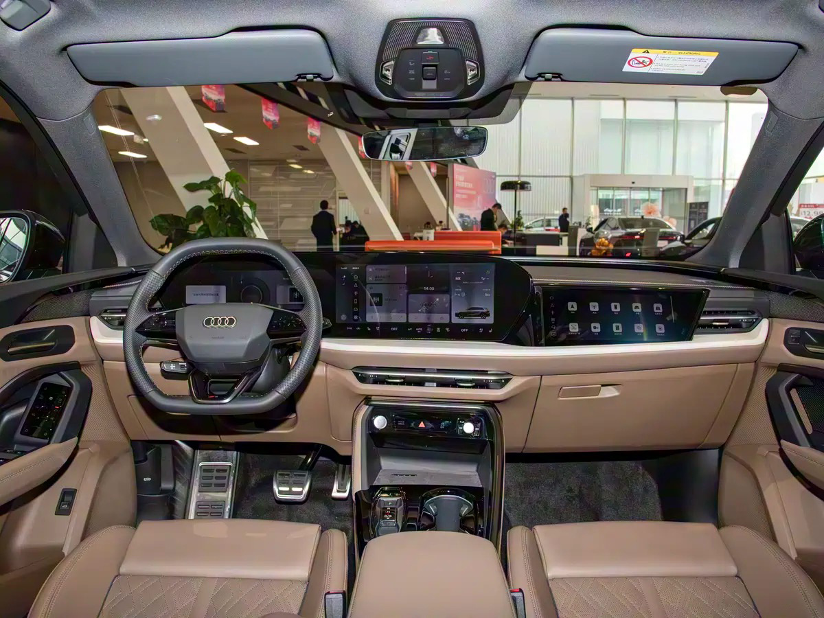 內(nèi)飾方面,全新奧迪Q5L延續(xù)了家族式設(shè)計(jì)風(fēng)格,注重科技感與豪華感的融合。三幅式平底多功能方向盤、滑塊式換擋機(jī)構(gòu)以及曲面雙聯(lián)屏的組合,提升了駕駛艙的現(xiàn)代感。副駕娛樂屏的加入,為乘客提供了更豐富的娛樂體驗(yàn)。整體內(nèi)飾布局簡潔大方,材質(zhì)選擇和做工細(xì)節(jié)均體現(xiàn)了奧迪一貫的高品質(zhì)標(biāo)準(zhǔn)。