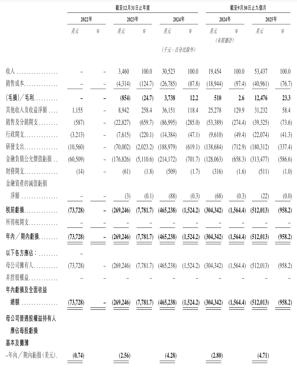 從財務數據來看,MiniMax近年來營收呈現出強勁的增長態勢。招股書顯示,2023年公司營收為346萬美元,2024年增長至3052萬美元。到了2025年前9個月,營收更是達到5343.7萬美元(約3.76億元),較上年同期的1945萬美元大幅增長175%,展現出良好的發展勢頭。