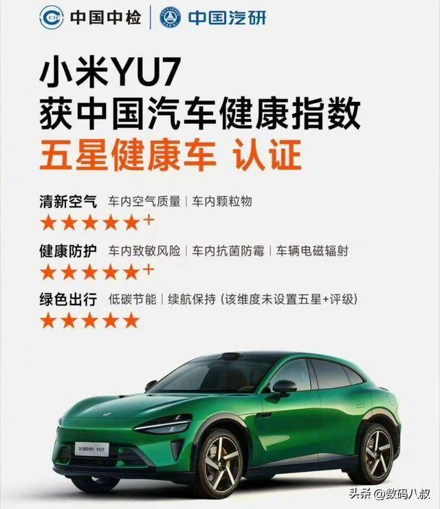 小米YU7獲五星健康認證:新能源汽車從性能比拼轉向健康新賽道